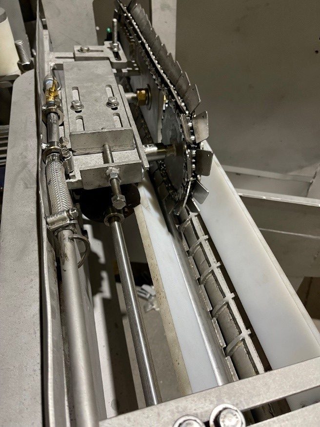 The 7200 Gizzard Machine features an integrated computer and camera system that detects gizzard yellowing in real time. Any gizzards identified with yellow are automatically diverted to a dedicated conveyor and returned to the peel wheel—reducing the need for manual inspection and increasing operator safety.